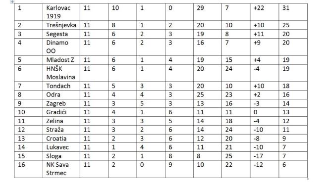 U utakmicama 11. kola 4. Hrvatske nogometne lige Središte zagorski klubovi ostvarli su dobar učinak. Zabočka Mladost je slavila na gostovanju u Odranskom Obrežu kod Dinama s minimalnih, ali sasvim dovoljnih 1:0. Tondach je na svom terenu odigrao utakmicu bez golova protiv favorizirane Segeste. Straža je poražena od posljednjeg u poretku Lukavca s 3:1, možemo reći čak i pomalo neočekivano. Ostali rezultati 11. kola: Croatia – Trešnjevka1:3, HNŠK Moslavina - NK Sava Strmec1:0, Gradići - Odra 3:1, Zagreb – Zelina 1:0, Sloga - Karlovac 19191:3.