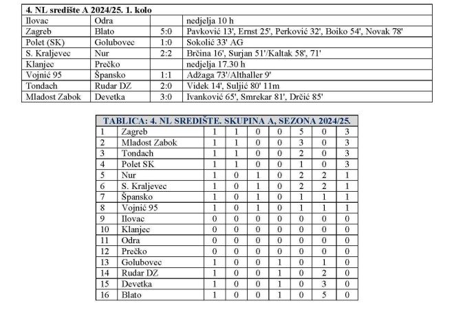 Krenulo je i natjecanje u 4. NL središte skupina A, u kojoj ove sezona Zagorje ima pet predstavnika. Već u 1. kolu vidjeli smo jedna zagorski, ujedno i susjedski derbi. Tondach je u Bedekovčini pobijedio Rudar DZ sa 2:0.