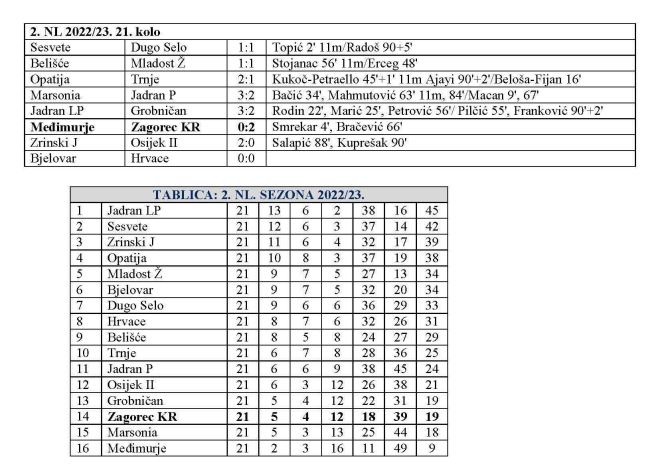U 21. kolu Druge SuperSport nogometne lige Zagorec gostovao kod Međimurja
