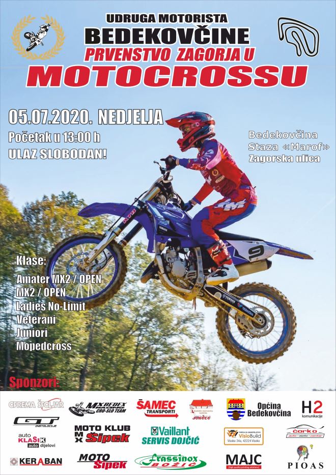 Na stazi Marof u Bedekovčini ove nedjelje 5. srpnja vozit će se druga utrka iz serija Prvenstva Hrvatskog zagorja u "Off road disciplinama". Kao što ljubitelji ovog natjecanja već znaju na Marofu se voze isključivo motokros discipline. Kako je nije vožena još ni jedna utrka Prvenstva Hrvatske, očekuje se nastup ponajboljih hrvatskih motokrosista. U te elitu zasigurno spadaju i naš Zagorci, Nikola Hranić i Luka Kunić, koji će nas sigurno oduševiti svojim vožnjama i nadajmo se pobjedama.