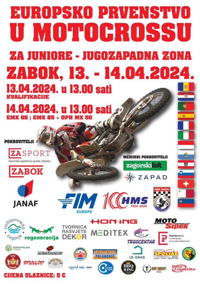 Dijele nas dani od velikog motokros spektakla na legendarnoj stazi Vučak u Zaboku, gdje će se ovoga vikenda održati utrka Europskog prvenstva jugozapadne zone za juniore u motokrosu. Poznato je da je jugozapadna zona najjača u ovom sportu, a čine ju sllijedećih trinaest država: Portugal, Španjolska, Andora, Francuska, Monako, Švicarska, Italija, Malta, San Marino, Lihtenštajn, Austrija, Slovenija i Hrvatska. Ovo će biti najjača motokros utrka u Hrvatskoj ove godine i svakako će biti veliki promocija za Zabok, zabočki i zagorski sport, ali i hrvatski sport u cjelini. MŠD Zabok na čelu s predsjednikom Srećkom Margetićem radi velike napore da utrka prođe u najboljem mogućem redu, a sigurni smo da će tako i biti. Domaćin se nada i velikom broju gledatelja, jer među ovim vozačima zasigurno će biti i neki koji će za desetak godina dominirati u ovom sportu na svjetskoj razini i sigurno će se rado sjetiti zabočkog Vučaka kao početka svoje velike karijere.