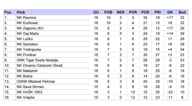 Utakmicama 17. kola nastavlja se natjecanje u III. NL-centar. U 17. kolu Zagorec KR na svom travnjaku dočekuje danas Vrapče, dok Gaj Mače sutra igra derbi kola protiv Kurilovca, također na domaćem terenu. Kurilovec je u srijedu u zaostaloj utakmici 16. kolo donio sa 1:0 Bistru.