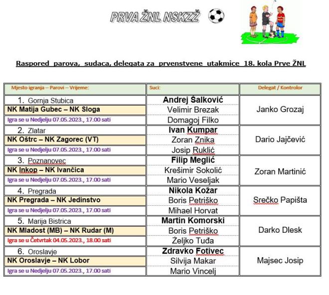1. i 2. ŽNL – 18. kolo