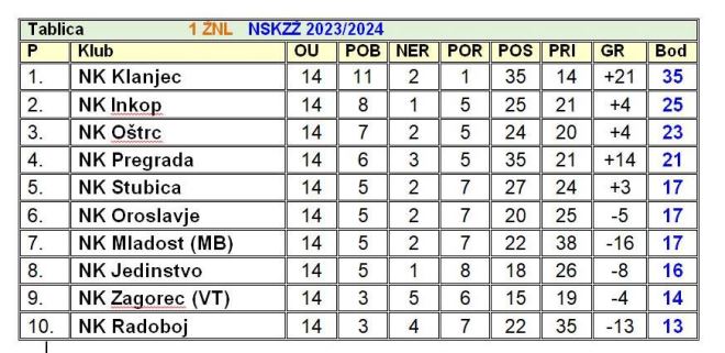 Nakon što je prošloga vikenda krenuo proljetni dio u županijskim nogometnim ligama, sutra je na rasporedu 15. kolu u 1. ŽNL. Vodeći Klanjec u derbiju gostuje kod Pregrade, no nezanimljivih utakmica nema. Važna borba za opstanak je u Radoboju gdje gostuje Jedinstvo, kao i u Velikom Trgovišću, gdje Zagorec dočekuje Oroslavje. Uvijek je i derbi utakmica Stubice i Oštrca, kao i lokalni derbi Mladosti MB i Inkopa. Utakmice se igraju u nedjelju u 15 sati, izuzev one u Mariji Bistrici, koja počinje u 16 sati.