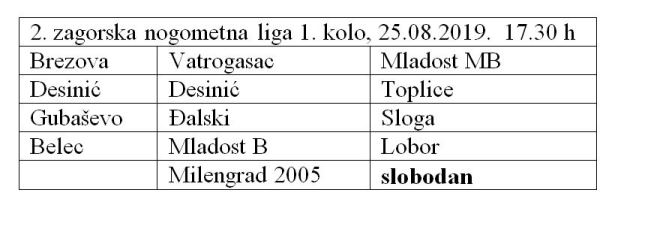 Cijela sezona mogla bi biti uzbudljiva, zapravo, morala bi biti. Nakon odlaska u 1. ligu Omladinac i Jedinstva u 1. zagorsku ligu, mnogi su pogledi uprti u Mladost Belec, koja je bila 3. u završenoj sezoni, i u nekim je dijelovima izgledalo da može i priprijetiti vodećem dvojcu. U 1. kolu Mladost za protivnika ima Lobor, koji također, već drugu sezonu zaredom najavljuje borbu za vrh, pa će i ovo biti zanimljiva utakmica. 1. kolo donosi i utakmicu koja je u prošloj sezoni bila derbi začelja. Naime, u Desiniću se sastaju Desinić i Toplice, dakle dvije ekipe koje su prošlu sezonu završile na zadnja dva mjesta. Sigurno je da od ove sezone očekuju više, pa bi međusobna utakmica, za jedne mogla ispasti kao dobar start. U 1. kolu igraju još u Gubaševom Đalski i Sloga. Đalski je nakon lošeg proljeća, sezonu 2018/19. završio na 7. mjestu i sigurno želi više, a Sloga je nakon loše pretprošle sezone, u prošloj bila peta. Može li nova sezona donijeti iskorak, vidjet ćemo.