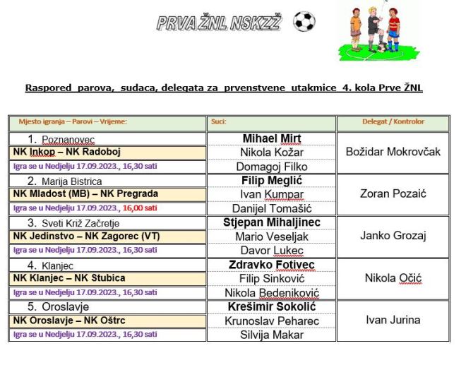 Danas je na rasporedu 4. kolo 1. zagorske nogometne lige, koje donosi i veliki derbi, prvi takav ove sezone. Naime, u Klanjcu će istoimeni domaćin dočekati Stubicu. Riječ je o susretu dva dojučerašnja člana 4. NL središte skupina A, a oba žele povratak. Inkop, koji je krenuo vrlo dobro u sezonu, u 4. kolu dočekuje Radoboj i traži novu pobjedu, a Pregrada će na teško gostovanje u Mariju Bistricu kod Mladosti. Jedinstvo čeka Zagorec VT, dok će se u Oroslavju sastati istoimeni domaćin i Oštrc. Utakmice se igraju danas u 16.30 sati, osim one u Mariji Bistrici, koja počinje u 16 sati.