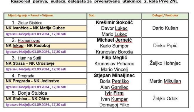 Sutra je na rasporedu 2. kolo 1. zagorske nogometne lige. U 2. kolu Stubica će imati drugu zaredom domaću utakmicu, u kojoj dočekuje Oštrc, a tu je i uvijek zanimljiva utakmice između Ivančice i Matije Gupca. Inkop će biti domaćin Radoboju, a Straža Oroslavju. Vrlo zanimljivo moglo bi biti u Pregradi, gdje će Pregrada dočekati Jedinstvo. Sve utakmice na rasporedu su sutra, s početkom u 17.30 sati.