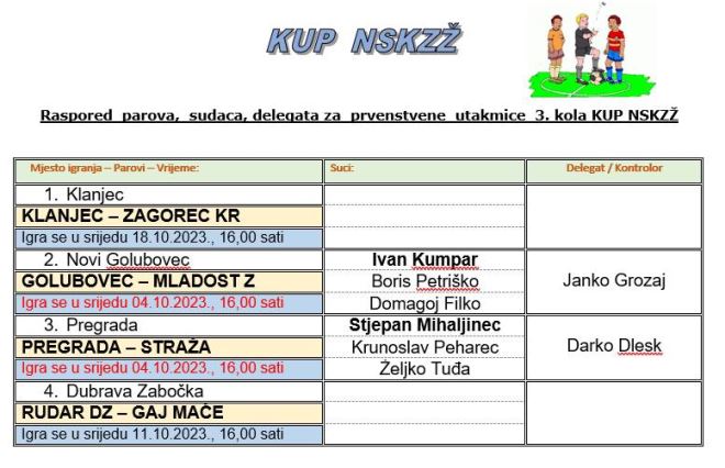 Danas se igraju dvije utakmice četvrtfinala zagorskog nogometnog kupa. Obje će biti i te kako zanimljive. Naime, u Novom Golubovcu sastaju se dvije vodeće momčadi 4. NL središte skupina A, Golubovec i Mladost Zabok. Podsjetimo nedavno su na istom mjestu odigrali i prvenstveni derbi, koji je završio 1:1, a nakon toga Golubovec je poražen kod Španskog, pa je Mladost pobjedom protiv Ilovca zasjela na vrh prvenstvene ljestvice. Danas od 16 sati provjerite kako će izgledati njihov kup ogled. U isto vrijeme igrat će se i lokalni derbi između Pregrade i Straže. Straža ima puno uspjeha u kupu, a ove sezone još je bez pobjede u prvenstvu, u 4. NL središte skupina A, dok se Pregrada bori za vrh u 1. ŽNL. No, loše je krenula u tu borbu sa dva poraza na startu, pa je nakon tri uzastopne pobjede, u nedjelju doživjela i treći poraz u derbiju kod Klanjca. Dakle, danas ćemo dobiti dva polufinalista zagorskog kupa. U srijedu 11. listopada igrat će Rudar DZ i Gaj Mače, a 18. listopada Klanjec i Zagorec Krapina.