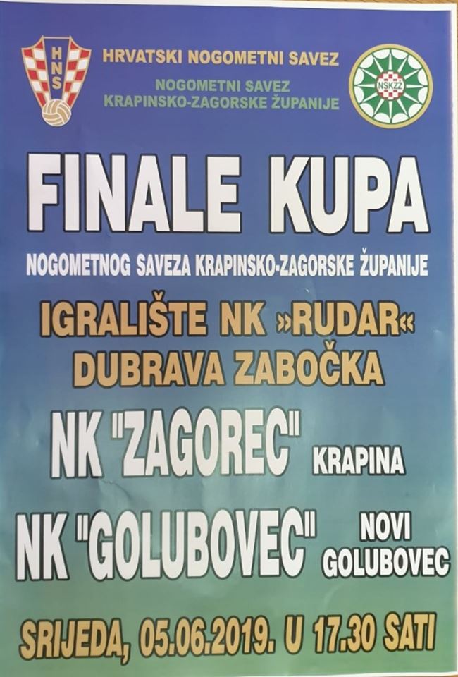 Nadamo se da će finalu kupa u Dubravi Zabočkoj koje će se odigrati u srijedu 5.6. s početkom u 17,30 sati odazvati veliki broj gledatelja koji će uživati u kvalitetnom nogometu i da ćemo prisustovati pravom „prazniku zagorskog nogometa“.