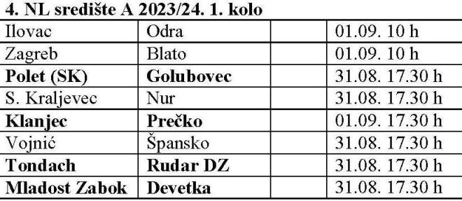 U isto vrijeme Mladost će u Zaboku dočekati Devetku, a Golubovec će gostovati kod Poleta (SK). Ove sezone od zagorskih klubova samo će Klanjec igrati nedjeljom, a u 1. kolu ove nedjelje 1. rujna dočekuje Prečko.