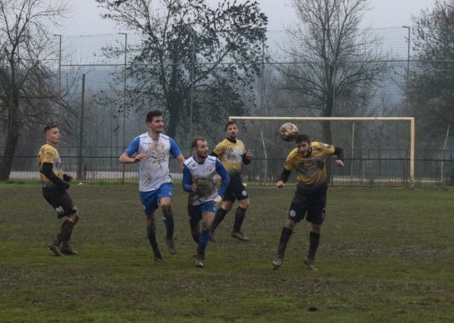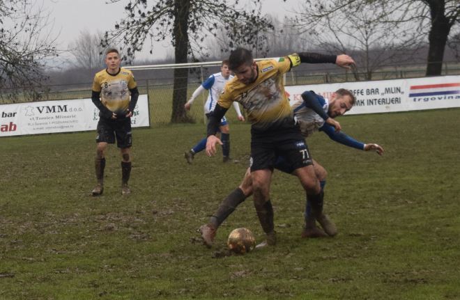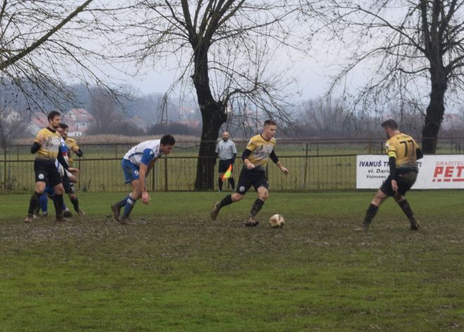 Već od polaska s centra prvo zapažanje bilo je vezano uz teren koji je bio izuzetno težak i bilo je jasno da će odmicanjem vremena biti sve teži. Gosti su se nekako bolje snašli u tim uvjetima i u 23. minuti po lijevoj strani probio se Dario Bosec i nabacio a sa 7 metara glavom za 0:1 zabija Filip Pirički.
