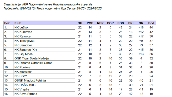 Zagorski klubovi imali su polovičan uspjeh u 22. kolu III. NL-centar. Zagorec KR ostvario je važnu pobjedu protiv Bistre, dok je Gaj poražen kod Vrapča koje s odlijepilo s dna ljestvice. Uvjerljivom pobjedom protiv Ponikvi Lučko je preuzelo vrh ljestvice. U derbiju kola Kurilovec je ostvario vrlo važnu gostujuću pobjedu protiv Ravnica. Maksimir je pomalo iznenađujuće prekinuo lijepi niz Trešnjevke i napravio je veliki korak prema sigurnoj zoni. Poslije dugo vremena trgnuo se i Dinamo OO i ubilježio sva tri boda protiv Samobora. Tigar SN ostvario je uvjerljivu pobjedu protiv Mladosti P, a u derbiju začelja HAŠK je slavio u gostima kod Save Strmec i predao joj „fenjer“.