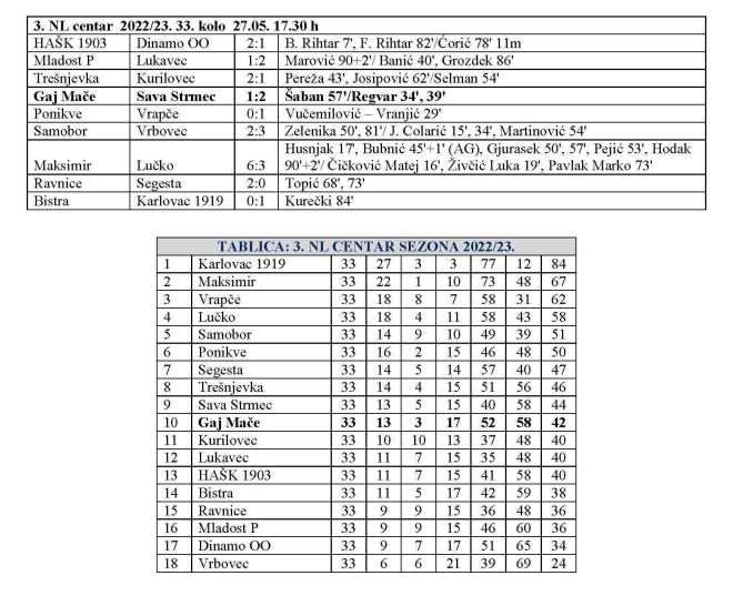 3. NL – centar: 33. kolo: Gaj – Sava Strmec 1:2