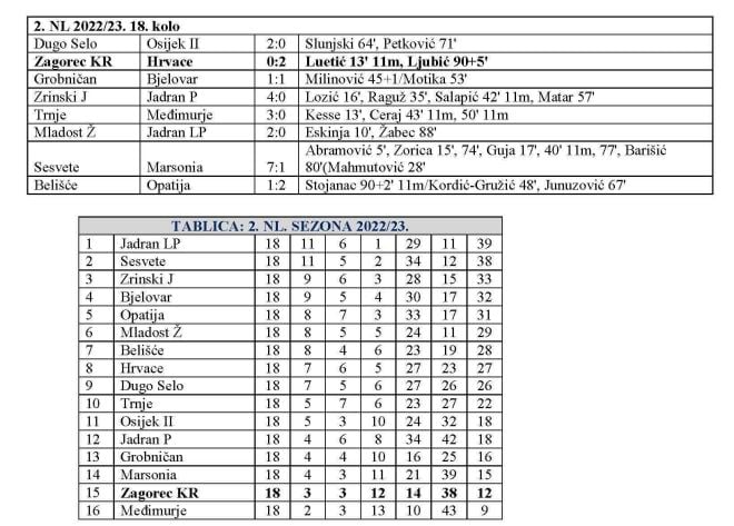 Igrači Zagorca, na krilima pobjede u prošlom kolu nadali su se da će i protiv Hrvaca upisati tri boda. No, sve snove vrlo je brzo srušio Škarić postigavši pogodak iz opravdano dosuđenog jedanaesterca u 13. minuti. Točku na i sigurne pobjede Hrvaca stavio je Ljubić u sudačkoj nadoknadi.