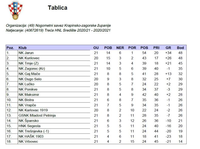 Porazi Gaja i Zagorca Kr u 21. kolu III. HNL - središte
