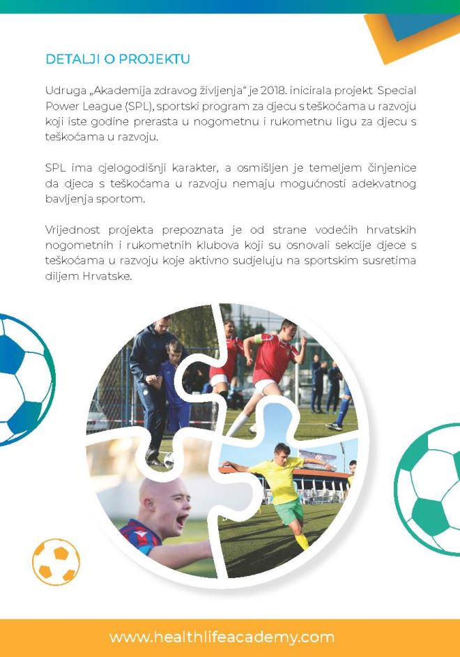 Udruga "Akademija zdravog življenja" od 2018.godine provodi projekt u obliku sportske lige za djecu i mlade s teškoćama u razvoju. Uz pomoć sportskih klubova (Floorball kluba Hidraulika Kurelja Donja Stubica i Nogometnog kluba Stubica) i Centra za odgoj i obrazovanje Krapinske toplice, Patricia Hrenek pokrenula je ovaj projekt u KZŽ. Kako kaže, svrha projekta je prije svega okupiti sportsku ekipu djece i mladih s teškoćama u razvoju s područja Krapinsko-zagorske županije koji će kroz treninge i mnoge aktivnosti razvijati svoje motoričke sposobnosti, vještine i napokon imati svoje mjesto u sportskom kluba zajedno sa svom drugom djecom. Projekt je osmišljen na način da je nenaplatan i da se svoj djeci omogući sudjelovanje u sportskim aktivnostima kao normalan dio njihove svakodnevice te da ih se potakne na što aktivnije sudjelovanje u zajednici kao ravnopravan član.