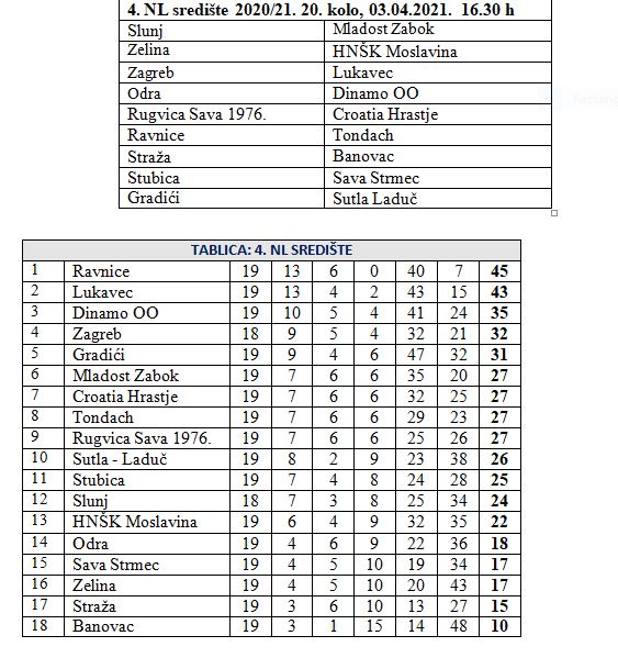 Donosimo sve parove 20. kola i aktualnu ljestvicu.