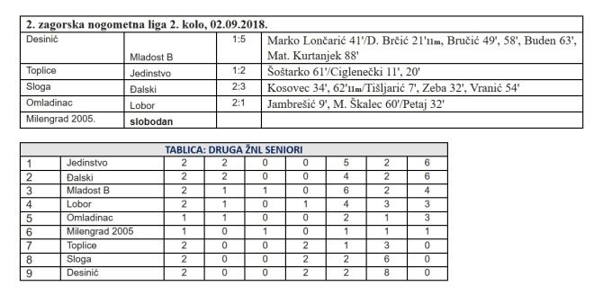 Rezultati prve i druge zagorske nogometne lige Autor: zagorje.com 02 rujna, 2018. 20:04 I ove nedjelje donosimo rezultate ispis Tweet Share on Facebook Plus on Google+ foto: arhiva