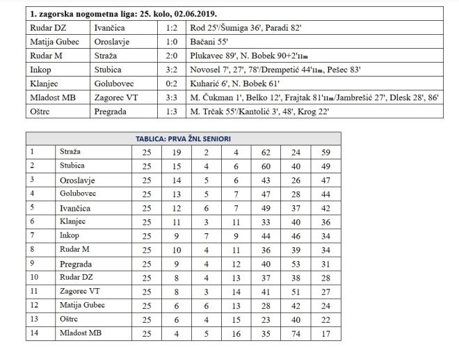 Rezultati prve i druge zagorske nogometne lige Autor: zagorje.com 02 lipnja, 2019. 21:17 Donosimo rezultate odigranih utakmica ispis Tweet Share on Facebook Plus on Google+