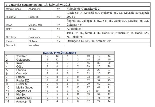 Rezultati prve i druge zagorske nogometne lige Autor: zagorje.com 29 travnja, 2018. 20:10 Donosimo rezultate ispis Tweet Share on Facebook Plus on Google+