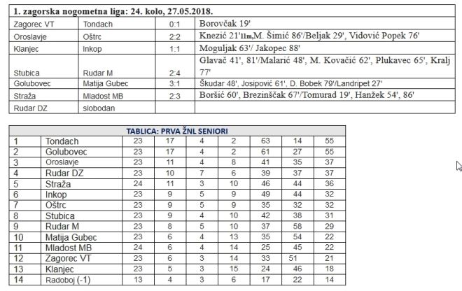 Rezultati prve i druge zagorske nogometne lige Autor: zagorje.com 28 svibnja, 2018. 08:52 Donosimo rezultate ispis Tweet Share on Facebook Plus on Google+