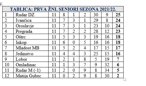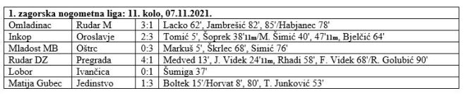 Kako je bilo zanimljiva i uzbudljiva cijela jesen u 1. zagorskoj nogometnoj ligi tako je bilo i zadnje kolo. U derbiju dvije do zadnjeg kola vodeće ekipe Rudar DZ je sa 4:1 svladao Pregradu i sa vodećeg ju spustio na 4. mjesto a sebi osigurao jesenski naslov sa 25 bodova. Ivančica je sa 1:0 slavila kod Lobora, dovoljno za drugo mjesto sa samo bodom manje. Na 3. mjestu proljeće će dočekati Oroslavje, također sa 24 boda, i to nakon 3:2 pobjede kod Inkopa. Pregrada je dakle pala na 4. mjesto sa 23 boda. Ta se četvorka ipak malo odvojila, a na 5. mjesto probio se Oštrc zahvaljujući 3:0 pobjedi kod Mladosti MB. Inkop na 6. mjestu ima također 18 bodova, a Mladost se spustila na 7. poziciju sa 17 bodova. Jedinstvo je u zadnjem jesenskom nastupu slavilo kod Matije Gupca 3:1 i drži 8. mjesto sa 16 bodova. Lobor je ostao na 9. mjestu sa 7 bodova, ali se na 10. digao Omladinac, koji je stigao do prve pobjede ove sezone. U Dubrovčanu je u derbiju začelja sa 3:1 pobijeđen Rudar M s kojim je Omladinac i zamijenio mjesto i ima 6 bodova, dok je Rudar M ostao na 5. Na samom začelju je Matija Gubec sa samo 2 boda. Tako je završio jesenski dio ove vrlo zanimljive sezone, u kojoj su 4 kluba na vrhu u samo 2 boda, pa na to garantira i vrlo zanimljivo zagorsko nogometni proljeće.