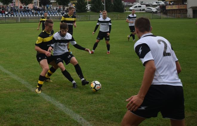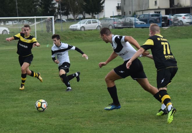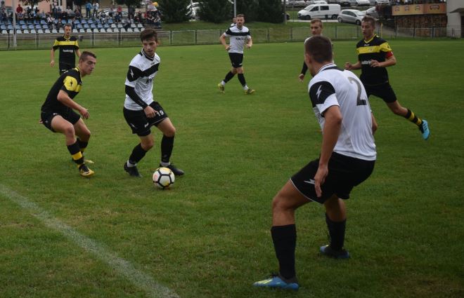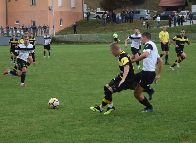 Puno smo više očekivali od prvih 45 minuta od dvije ekipe koje su krenule u prvenstvo s dvije pobjede. No, oprez bi bila najbolja riječ za opis prvog dijela. U 2. minuti domaćini su imali slobodan udarac s lijeve strane jako iskosa, a izveo ga je Stjepan Šalković, no lopta je prošla pored mnoštva igrača, a da ju nitko nije dirao. U 5. minuti uslijedio je ubačaj s lijeve strane pred gol gostiju, lopta se od nekoga odbila, pa su na nju krenuli golman Petar Risek i napadač Jurica Plukavec. Risek dolazi prvi, a iako mu na tren lopta ispada ipak ju hvata. Prva prijetnja, kakva takva od strane gostiju stigla je u 16. minuti. Ivan Josipović se probio po lijevoj strani i daje za Kristijana Valjavca, koji puca preko gola.