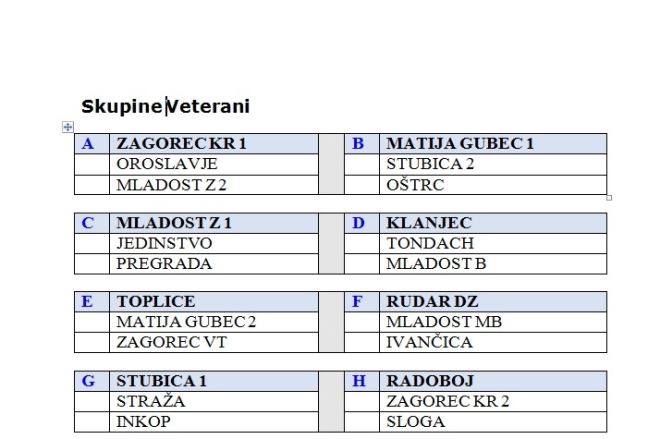 Kod seniora nedostaju Zagorec KR i Gaj. Branitelji naslova su zabočka Mladost u konkurenciji seniora i krapinski Zagorec u konkurenciji veterana.