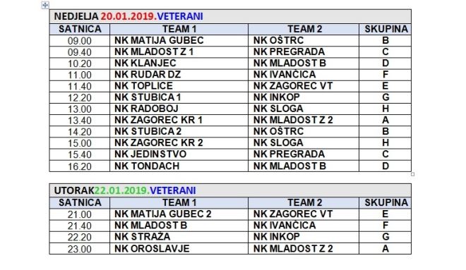 U petak u 17 sati u Gradskoj sportskoj dvorani u organizaciji Rudara iz Dubrave Zabočke započeti će novo izdanje Dvoranskog prvenstva NS KZŽ. Otvorit će ga branitelj naslova u seniorskoj konkurenciji, zabočka Mladost, utakmicom protiv Oštrca. U petak nas očekuje 9 utakmica, a igrat će se sve do pola sata iza ponoći. U subotu će turnir početi već u 9 sati utakmicama veterana, no morat će biti prekinut u 17 sati zbog prvenstvene košarkaške utakmice između Zaboka i Alkara koja će početi u 19 sati. No nakon završetka košarkaške utakmice u 21 sati će u seniorskoj konkurenciji snage odmjeriti Straža i Đalski.