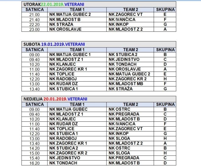 Pravi maraton biti će u nedjelju kada je na rasporedu čak 21 utakmica, a igrat će se od 9 sati pa sve do 23 sata. Za sada je sigurno da će veterani svoje utakmice igrati i u utorak, a sigurno je da će i seniori morati iskoristiti barem jedan do dva dana početkom idućeg tjedna.