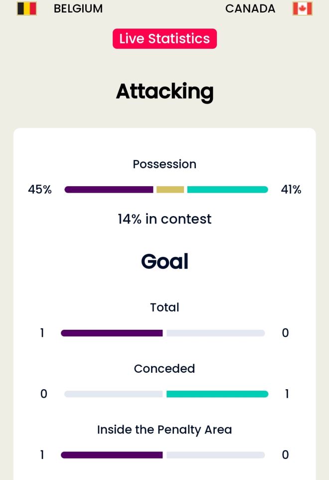 Pored svega toga, Kanada je uputila čak 21 udarac prema golu, tri u okvir, a Belgija devet, od čega tri u okvir, prema statistici na službenoj stranici SP.