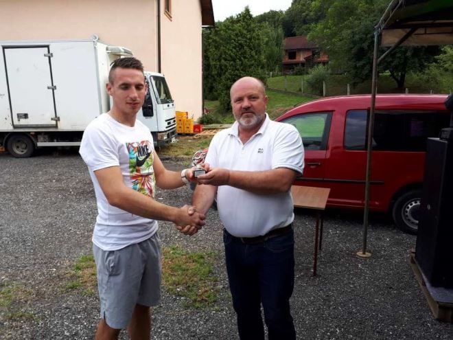Marko Šlogar  prima nagradu od načelnika Darka Bana