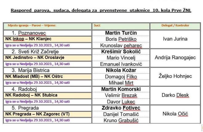 Nova uzbuđenja donosi nam 10. kolo u 1. zagorskoj nogometnoj ligi, koje je na rasporedu sutra. Na rasporedu je veliki derbi, u kojem će drugoplasirani Inkop dočekati vodeći Klanjec, a u utakmicu ulaze sa jednakim brojem bodova. Oroslavje gostuje kod Jedinstva, a Oštrc kod Mladosti MB. Nakon pobjeda Mladosti i Jedinstva u prošlom kolu, bit će to vrlo zanimljive utakmice. Pregrada će sa novim trenerom Serdarom dočekati Zagorec VT, dok će Stubica gostovati kod Radoboja. Utakmice se igraju sutra početkom u 14.30 sati.