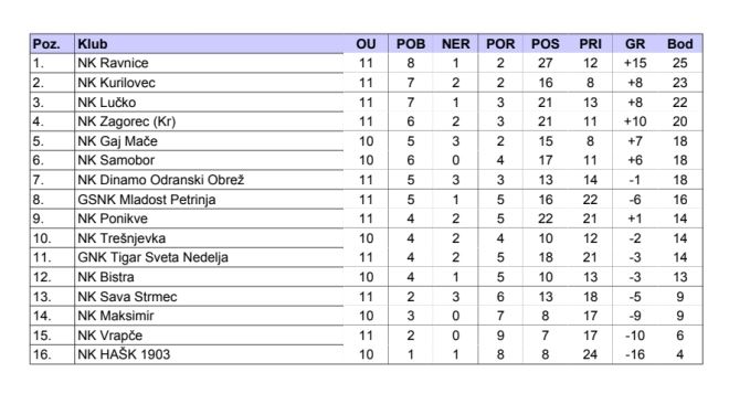 Sutra se još igraju dvije utakmice. Gaj Mače, sada sa petog mjesta dočekuje Samobor, koji se nalazi na šestom mjestu, i jedni i drugi sa 18 bodova, pa je riječ o pravom derbiju, pobjednik kojega bi zadržao priključak sa vodećima. Utakmica se igra u 11.30 sati. Kolo će završiti Bistra i Trešnjevka, sutra od 14.15 sati.