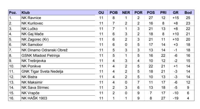 Inače, Gaj u kolo ulazi sa četvrtog mjesta sa 21 bodom, a Zagorec sa petog mjesta sa 20 bodova. Evo i ostalih parova i ljestvice.