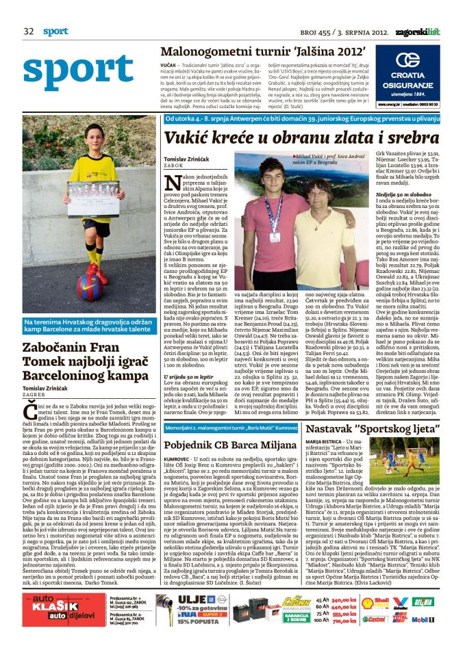 Krajem lipnja i početkom srpnja 2011. godine ispisana je jedna od najljepših zagorskih sportskih priča. Zabočanin Mihael Vukić, plivač PK Olimp, pod vodstvom svog trenera prof. Ivice Androića na Europskom juniorskom prvenstvu u plivanju, koje se održalo u Beogradu, postao je europski prvak u disciplini 50 leptir, a nakon toga i viceprvak na 50 slobodno. Bila je to prava senzacija, iako se znalo da bi Mihael mogao dosta napraviti u leptiru, no u kraulu je definitivno iznenadio sve. Slijedio je fantastičan doček u Termama Tuhelj, dirljiv i pun emocija. Primanja kod gradonačelnika, župana, medijska eksponiranost u svim smjerovima. U drugoj polovici kolovoza te godine novi uspjeh. Na juniorskom Svjetskom prvenstvu u Peruu Vukić postaje viceprvak svijeta na 50 leptir. Loša reakcija na startu koštala ga je zlata, ali kome se može zamjeriti svjetsko srebro.