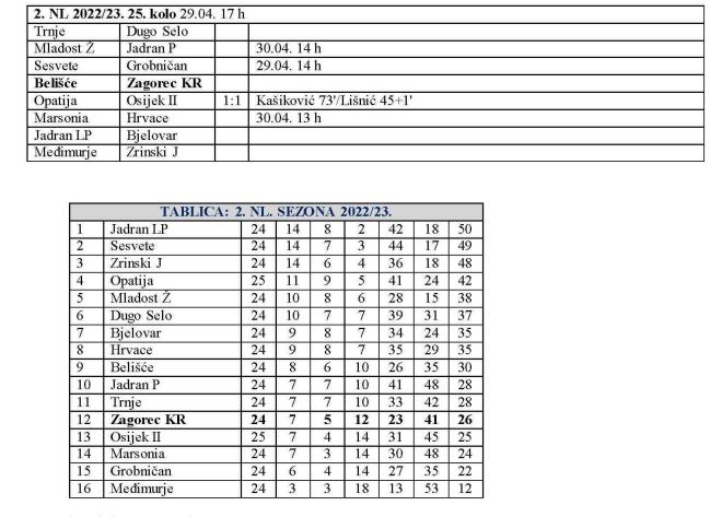 Tako se Opatija nije baš previše oporavila nakon poraza u Krapini u prošlom kolu. A Zagorec KR će danas pak u Belišću pokušati nastaviti sjajan niz bez poraza, nakon kojega su u sve većoj zoni komfora. Kada bi stigla nova pobjeda, baš bi svom današnjem protivniku stigli samo na boda. Utakmica se igra u 17 sati, a evo i svih drugih parova i ljestvice.