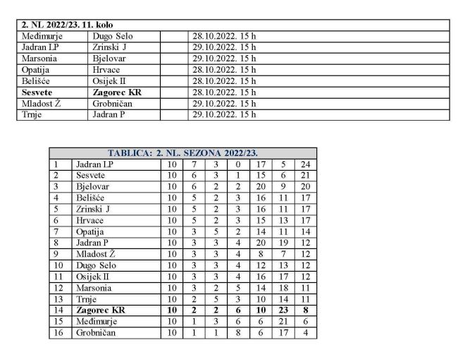 Zagorec Krapina će već danas u 11. kolu 2. SuperSport NL gostovati kod Sesveta. Bilo bi to vrlo teško gostovanje i da Zagorec nije u krizi već duže vrijeme. Sesvete nisu neka prilika za vađenje, ali s druge strane u ovoj utakmici nogometaši iz Krapine i nemaju što za izgubiti.