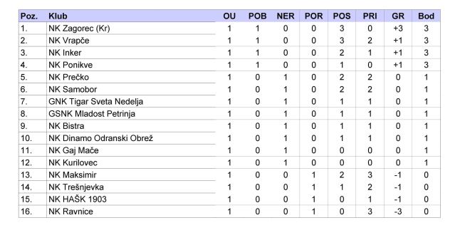 Počelo je novo izdanje III. NL-centar. Zagorec KR jedini je uvjerljivo trijumfirao u 1. kolu III. NL-centar. Krapinčani su kući ispratili Ravnice s tri pogodaka u mreži ne primivši ni jedan i zasluženo su prva momčad lige poslije prvog kola. Gaj Mače se s gostovanja kod Kurilovca vratio s bodom, što je dobar rezultat. Bila je to jedina utakmcia kola u kojoj su mreže mirovale. Prečko je na svojoj trećeligaškoj premijeri dva puta vodila protiv Samobora, ali je na kraju osvojilo samo bod. Vrapče je preokrenulo protiv Maksimira i došlo do prve ovosezonske pobjede. Inker ja slavio protiv Trešnjevke, a jedinu gostujuću pobjede odnijele su Ponikve kod HAŠK-a. Mladost je remizirala protiv Bistre, a Dinamo OO protiv Tigra SN.
