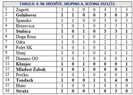 4. NL – središte A 1. kolo: Golubovec – Straža 3:0