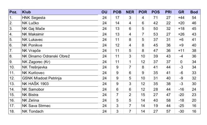 Završeno 25. kolo III. NL-centar bilo je uspješno za zagorske klubove koji su od mogućih devet osvojili sedam bodova. U subotu se Zagorec KR pobjedom protiv Trešnjevke popeo na deveto mjesto, dok je Tondach osvojio bod protiv jakog Maksimira, no Bedekovčancima trebaju pobjede ako se žele spasiti iz ove teške situacije. Na nedjeljnoj matineji Gaj je u atraktivnoj utakmici s devet pogodaka nadmašio zahuktale Ponikve i ponovno se vratio na treću poziciju. Lider Segesta uvalio je HAŠK-u „petardu“, a Lučko je tricom Kurilovcu zadržalo treću poziciju. Petardom je i Dinamo OO isprati kući Bistru. U derbiju začelja Zelina i Sava Strmec remizirali su u utakmici s četiri pogotka, baš kao i Vrapče i Mladost P. Jedinu utakmicu bez golova odigrali su Lukavec i Samobor.