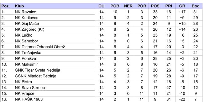 Neće biti lako ni Gaju, koji gostuje kod Ponikvi, koje u zadnje jesensko kolo ulazi sa devetog mjesta, no pobjeda bi značila jako puno pred proljetni nastavak. nače, vodeća dvojka ima domaće utakmice, Ravnice dočekuju Maksimir, a Kurilovec Samobor. Jesenski dio sutra će završiti Sava Strmec i Vrapče.