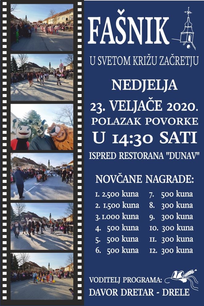 Već tradicionalno Udruga za kulturu, zabavu i šport iz Svetog Križa Začretja organizira Svetokriški fašnik koji već godinama okuplja brojne posjetitelje koji dolaze vidjeti povorku i velikih broj fašničkih grupa. Fašnik u Sv. Križu Začretju s pravom slovi kao jedan od najvećih i najposjećenijih fašnika u Zagorju, a najbolje fašničke grupe svake godine pa tako i ove očekuju bogate nagrade. Ove godine fašnik će se održati u nedjelju 23. veljače, a polazak povorke je u 14.30 ispred Restorana ‘Dunav. Sve grupe se potom okupljaju na Trgu hrvatske kraljice Jelene te izvode kratak program. Dodjeljuje se čak 12 novčanih nagrada od 300 do 2500 tisuća kuna. Organizatori pozivaju sve da se pridruže i prijave za sudjelovanje. I ove godine, voditelj programa je Davor Dretar-Drele, uvijek rado viđen gost u Zagorju. - Zabava je zagarantirana - poručili su organizatori.