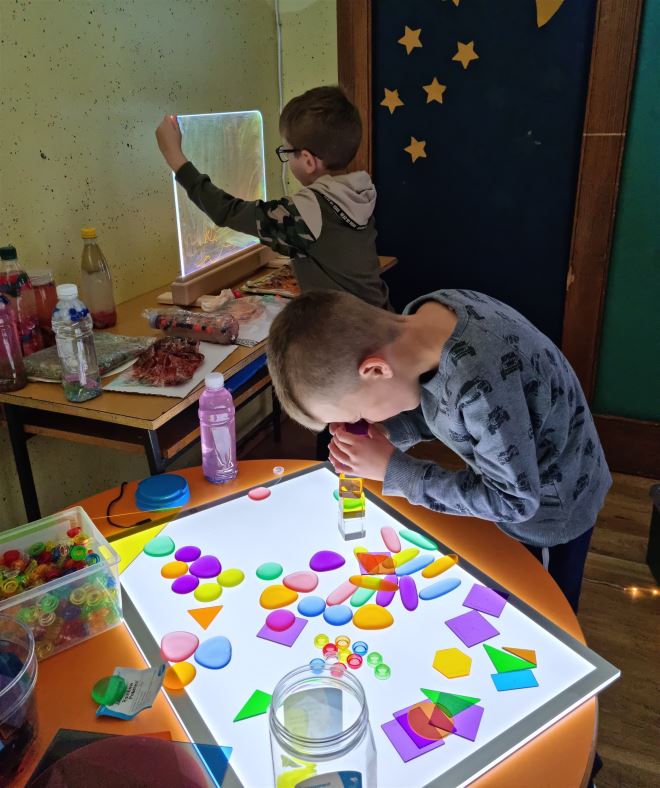 Na internetu su djeca pronašla upute kako izraditi senzorne boce, vrećice, kadicu s led rasvjetom i slično. Kupili su potreban material i uz pomoć učiteljice i starije djece u boravku napravili poticajne senzorne igračke. Sve je to pokazano i načelniku koji je u Dječjem tjednu bio pozvan na druženje u prostor produženog boravka. Dogovoreno je da se kutić obogati još nekim izazovnim i zanimljivim igračkama kako bi dobio pravi smisao. Općina je financirala kupnju dodatnih igračak tako je senzorni kutić za djecu boravka postao lijepo i zanimljivo mjesto za opuštanje i igru djeci koja moraju skoro cijeli dan boraviti u školi, a potom i u boravku.