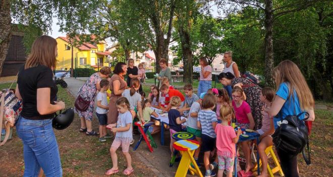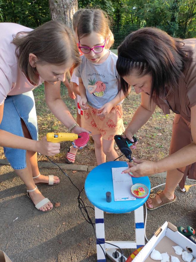 Tako su nastali originalni ukrasi-magneti. Hladnom lubenicom svi su se zasladili na kraju i nastavili družiti uz mame, tate, bake, u sjeni breza i borova. Voditeljica radionice bila je Ivana Kmetić.