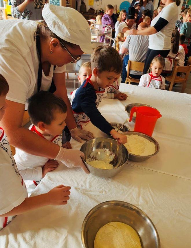 U akciju koja se održala u Dječjem vrtiću Sveti Križ Začretje, uključila se Osnovna škola s učenicima koji pohađaju Produženi boravak, dječje Općinsko vijeće naše Općine, djelatnici Općine i Općinske knjižnice i čitaonice, mali Cvrkutići, Društvo naša djeca i KUD Sveti Križ Začretje s folklornom i tamburaškom sekcijom, a glavni kuhari uz djecu iz produženog boravka bili su vrtićke grupe Tigrići i Ribice koji su uz veliku pomoć kuhara Darka i kuharice Davorke pripremali mlince na način kako su to radile naše bake od brašna do stola.