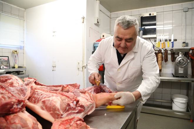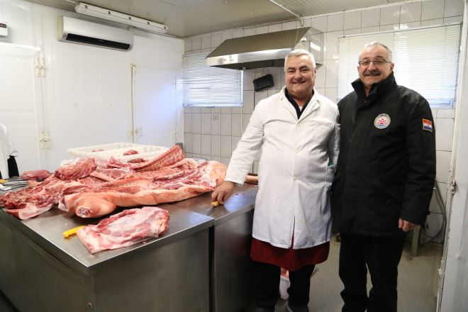 - Radimo sve što se da napraviti od jedne svinje. Počnemo od čvaraka, zatim pojedine dijelove mesa obradimo za šunke koje sušimo sad za Uskrs, zatim se odvajaju oni dijelovi koji idu za krvavice i prezbušte. Zatim se pacaju bunceki, pa čak i svinjske nogice, za koje isto imam sve više mušterija koje ih traže i unaprijed ih naruče. Radim, naravno, i kobase, salame, domaći jeger... Znači, ništa se ne baca od svinje. Sve se potroši. Čak i kožice koristimo za prezbušt – govori nam Branko.