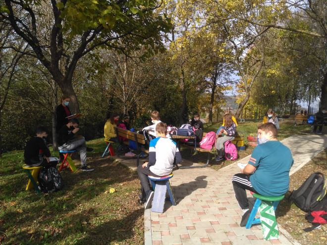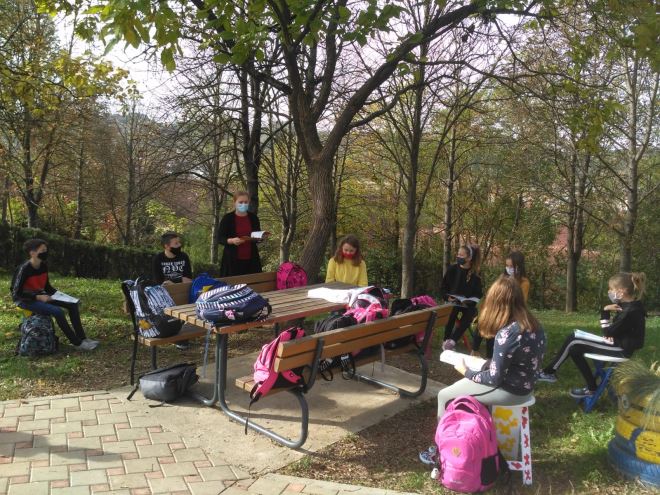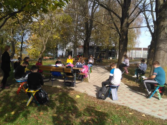 Želja je da se parkić pri školi, koji ima dva drvena stola i klupe, proširi na neki način dodavanjem mjesta za sjedenjem uz obvezni razmak. Prostor se tako može pretvoriti u učionicu na otvorenom koju za lijepog vremena mogu koristiti svi učenici škole, a preporučuje se nastavu držati što više vani što je vezano uz epidemiološke mjere.