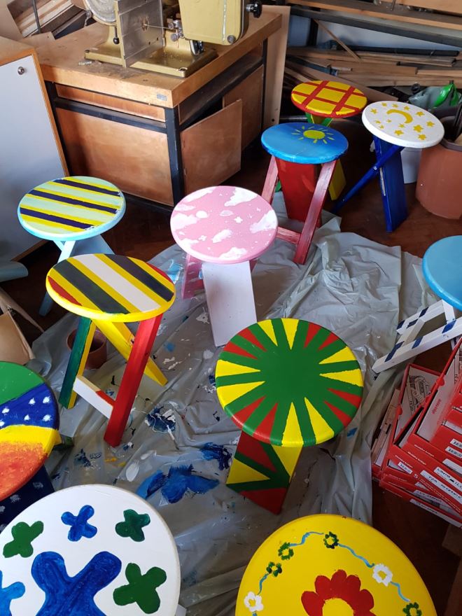 Djeca predlažu drvene 'stolčeke' na sklapanje kako bi ih mogli lako nositi i pospremati. Općina podržava ideju i pronalazi majstora stolara koji prema ideji učenika, članova Kluba mladih tehničara izrađuje drvene stolice