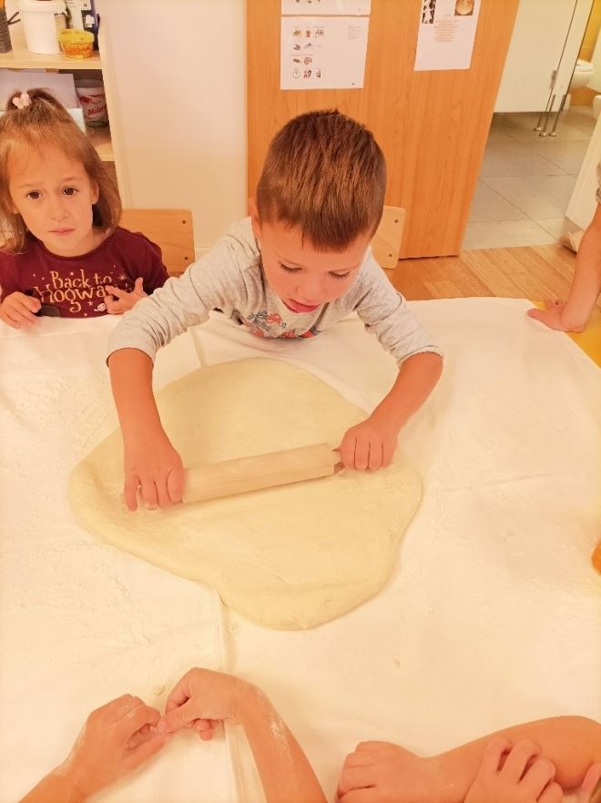 Kroz slikopriče, priče, pjesme i recitacije djeca su upoznala kako nastaje kruh te koliko je važan u svakodnevnom životu. Okušali si se i miješanju vode, brašna i kvasca te su tako sami umijesili kruh i kiflice i ispekli ih uz pomoć kuharice, a potom i degustirali.